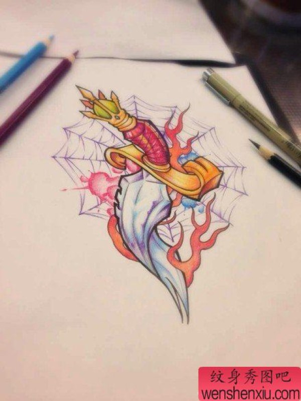 时尚很帅的一张匕首纹身手稿