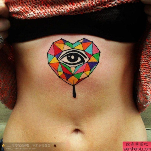 美女腹部一张彩色爱心纹身作品