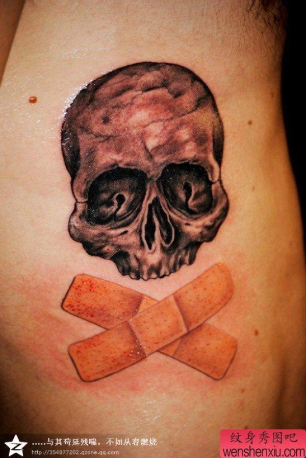 一张时尚骷髅创口贴纹身图片