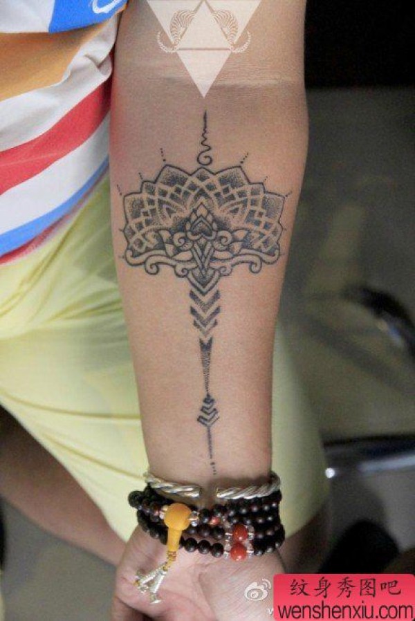手臂时尚时尚的点刺图腾莲花纹身图案