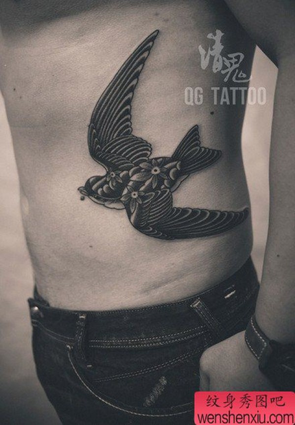 腰部唯美时尚的燕子纹身图案