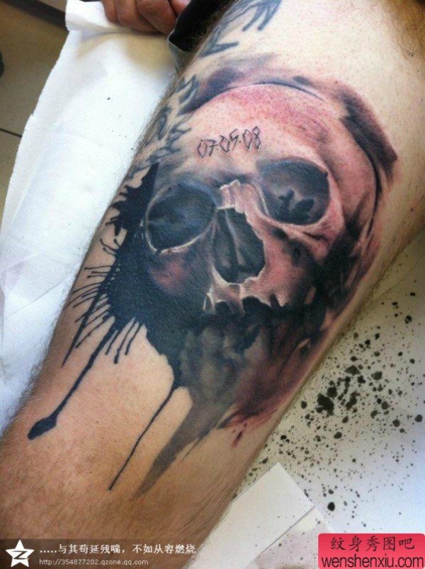 一张喷墨骷髅纹身作品
