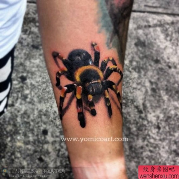 一张超写实小臂蜘蛛纹身图案