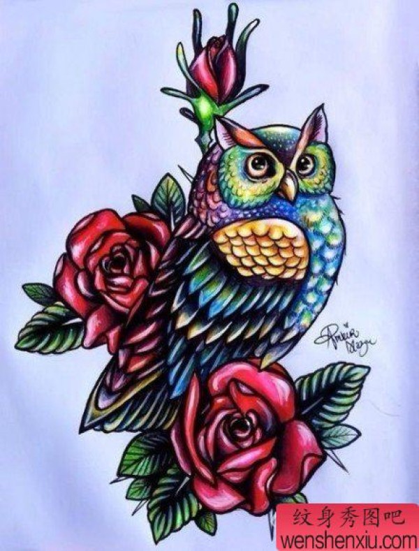 时尚经典的一张猫头鹰纹身手稿