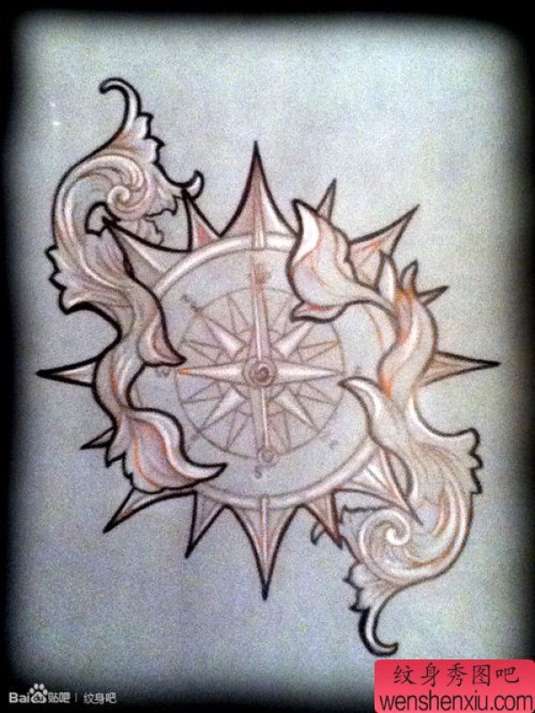 一张时尚的指南针纹身手稿