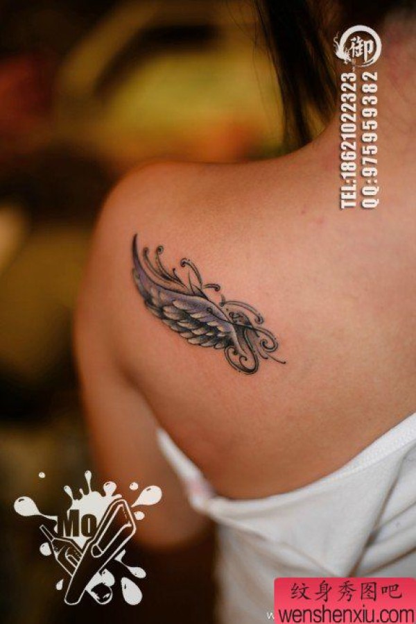 女生肩背好看唯美的翅膀纹身图案
