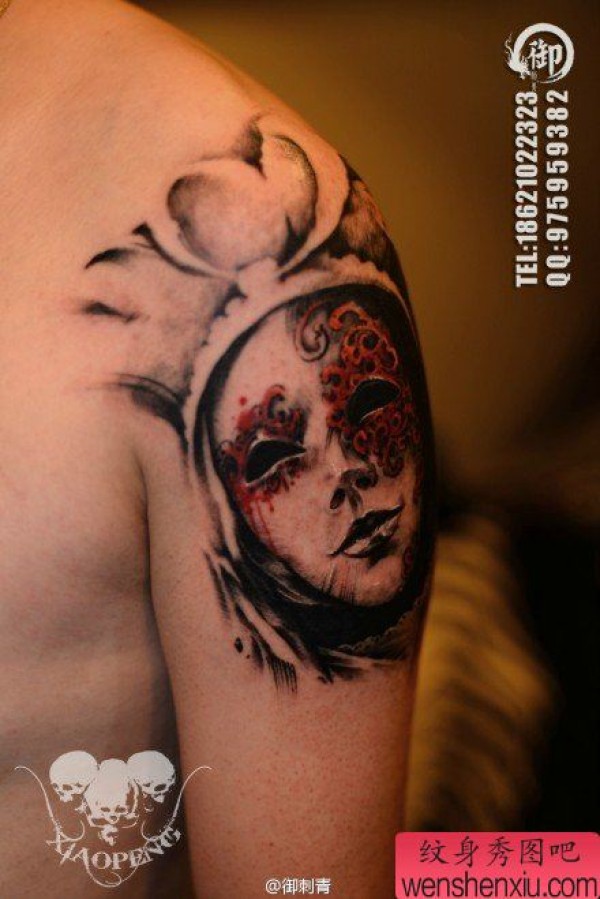 能面万媚纹身手稿_52张日式能剧面具纹身手稿图案素材欣赏