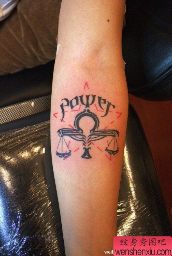 手臂经典时尚的一张天秤座纹身图案