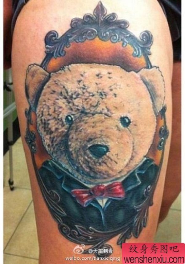 腿部时尚时尚的一张熊娃娃纹身图案