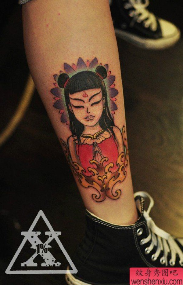 小腿上的一张哪吒纹身图案