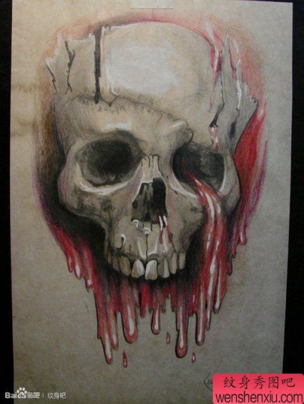 经典很帅的一张彩色骷髅纹身手稿