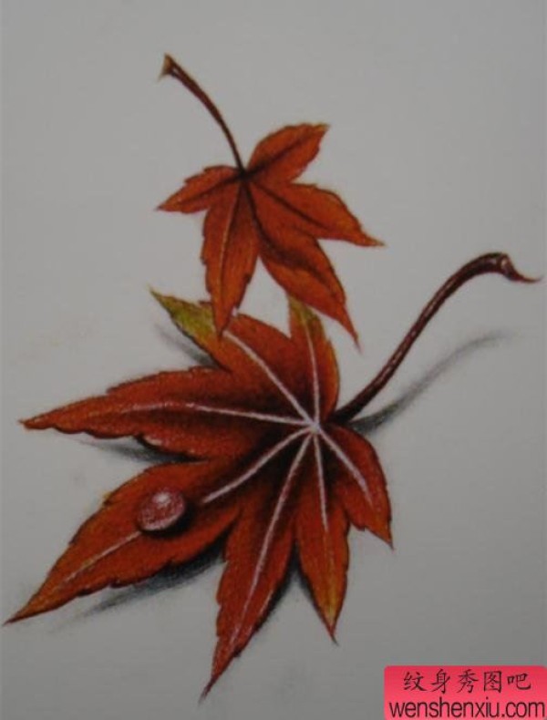 分享一张红色的桑叶纹身手稿