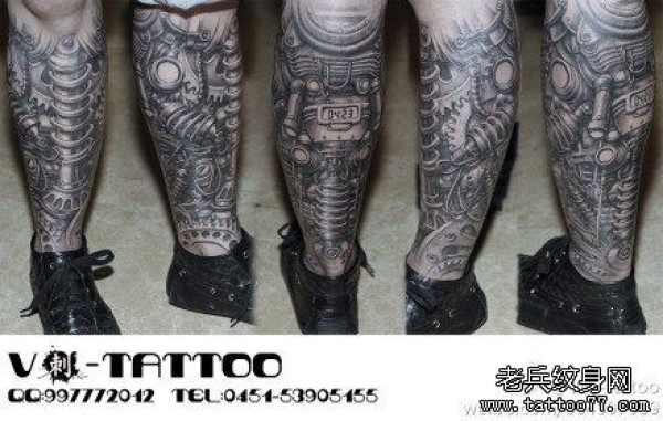 男士腿部很酷经典的机械腿纹身图案