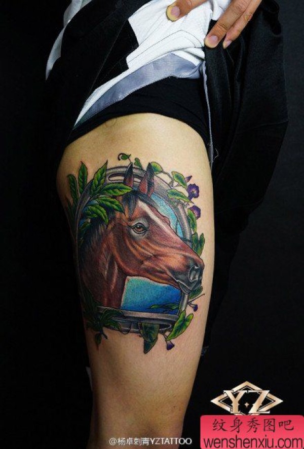 腿部帅气时尚的马纹身图案
