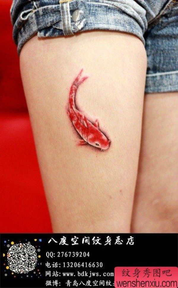 女生腿部小巧时尚的写意小鲤鱼纹身图案