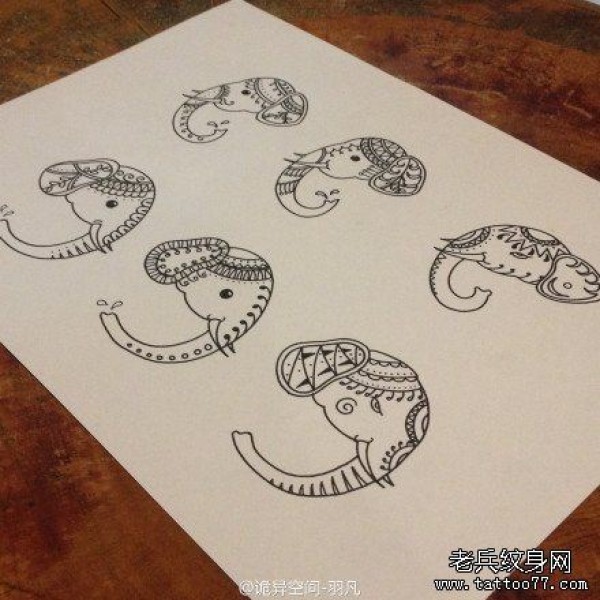 一套时尚时尚的小象纹身图案