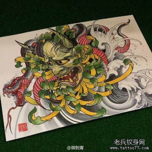 时尚很酷的一张般若蛇纹身手稿