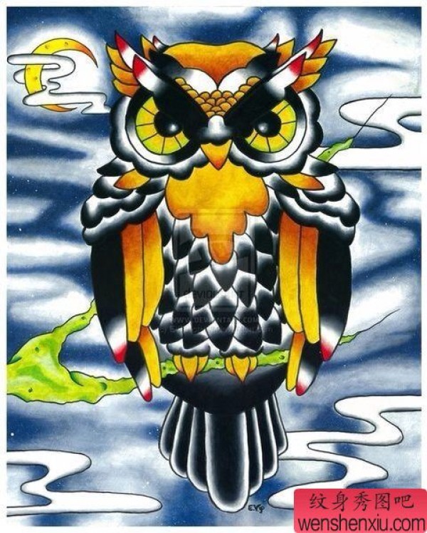 时尚简洁的一张猫头鹰纹身手稿