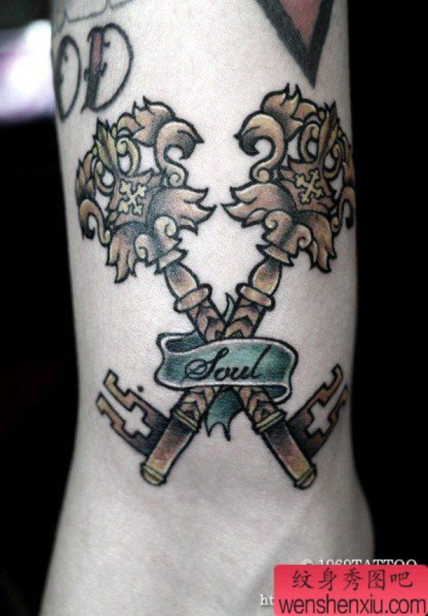 手臂时尚时尚的钥匙纹身图案
