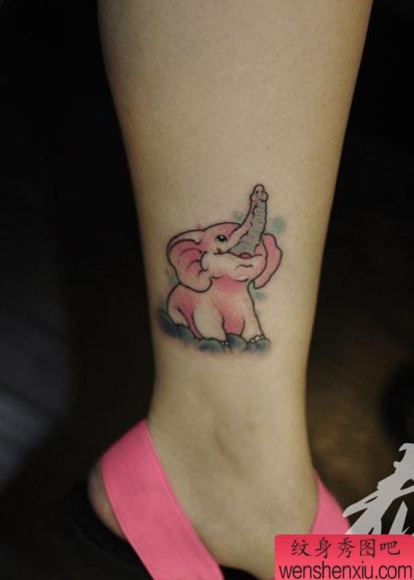 脚踝上一张可爱的粉色小象纹身作品