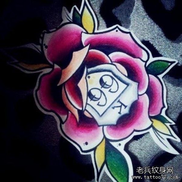 时尚时尚的一张玫瑰花纹身手稿