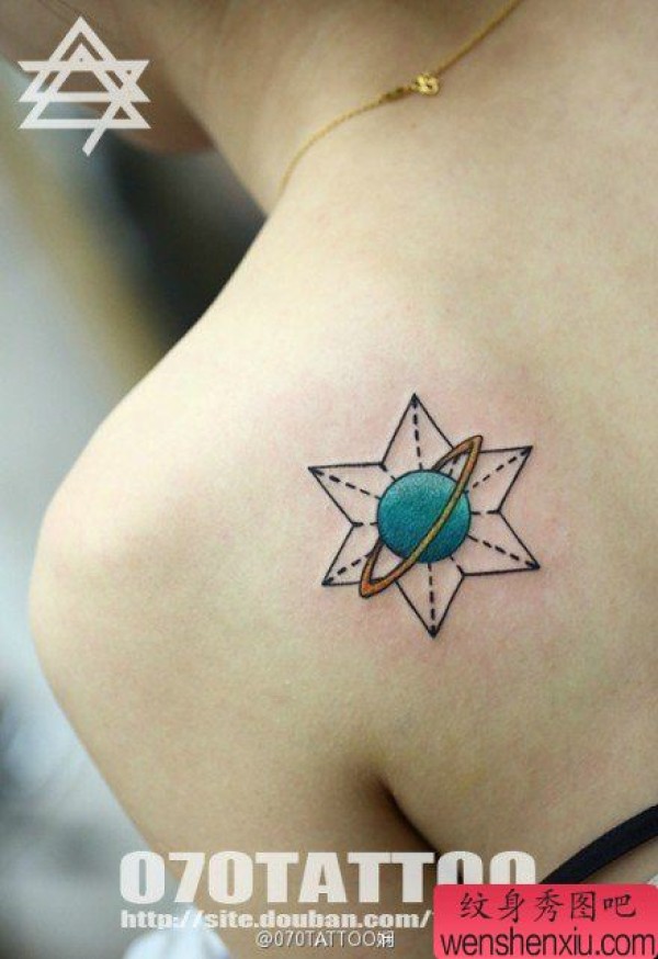 女生肩背小星球纹身图案