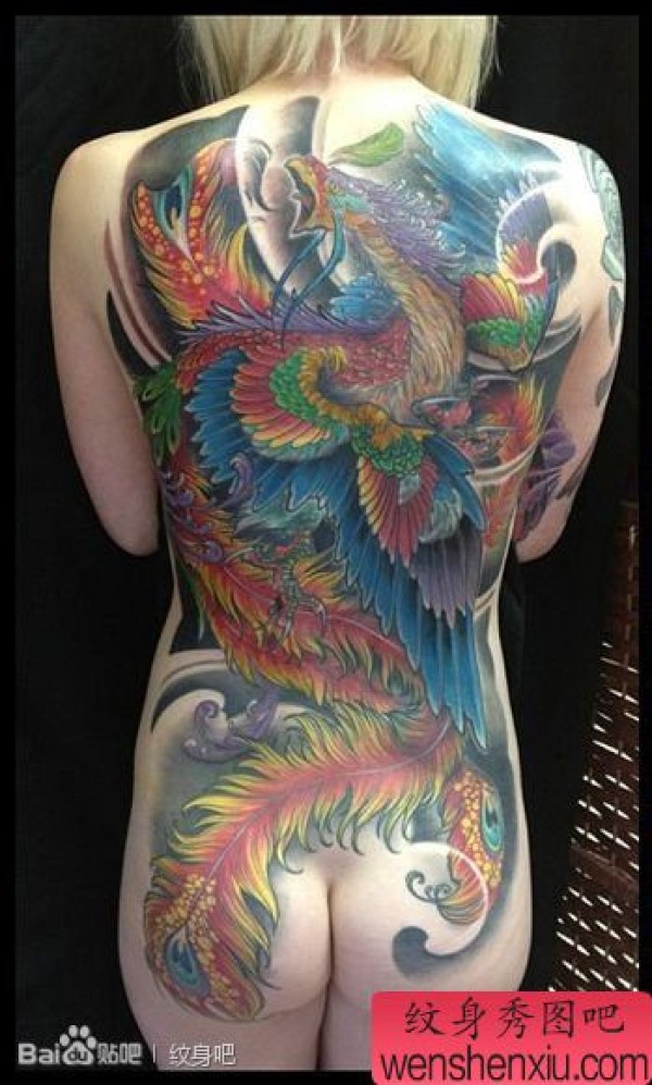 女生后背漂亮很酷的满背凤凰纹身图案