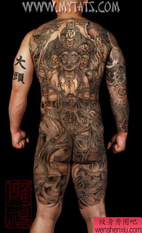 男士后背很酷帅气的满背佛纹身图案