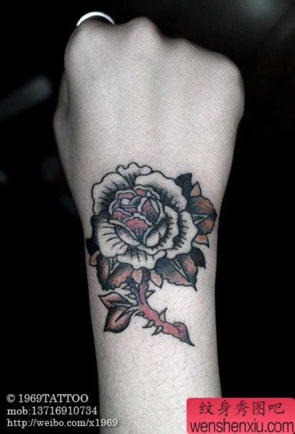 女生手腕唯美的玫瑰花纹身图案