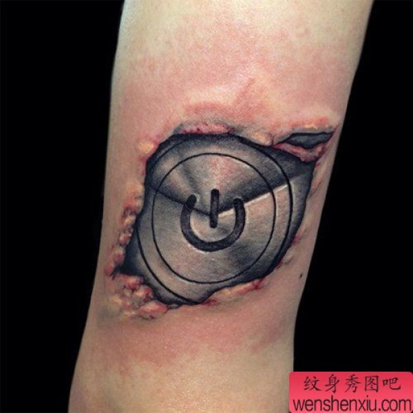 一张另类经典的欧美撕皮开关按钮纹身图案