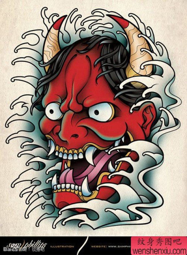 能面万媚纹身手稿_52张日式能剧面具纹身手稿图案素材欣赏