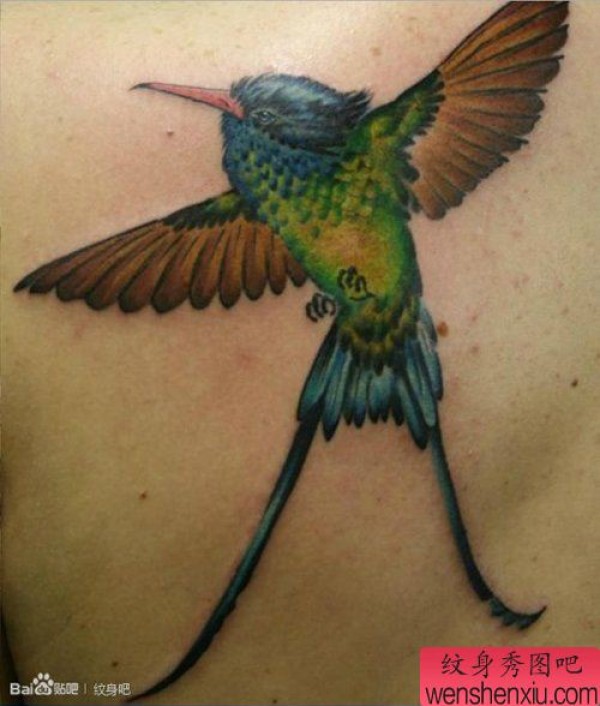 后背经典时尚的一张小鸟纹身图案