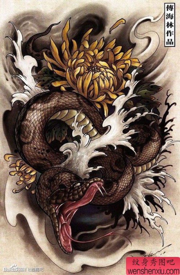 时尚很酷的一张蛇纹身手稿