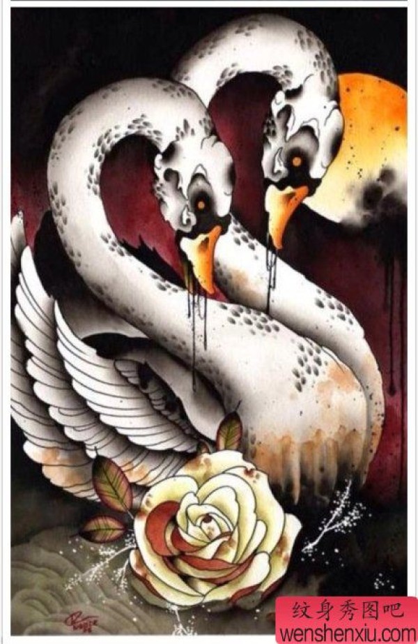 一张时尚很酷的天鹅纹身手稿