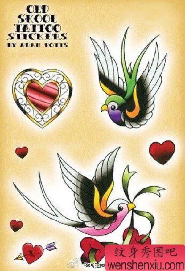 小巧时尚的小燕子纹身手稿
