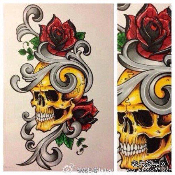 经典很帅的一张欧美骷髅纹身手稿