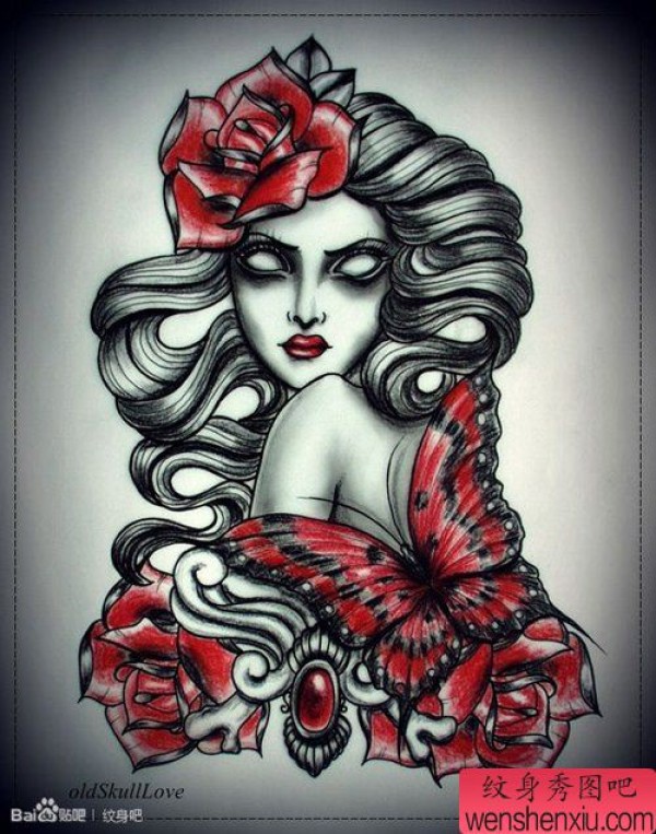 漂亮的黑白欧美美女纹身手稿