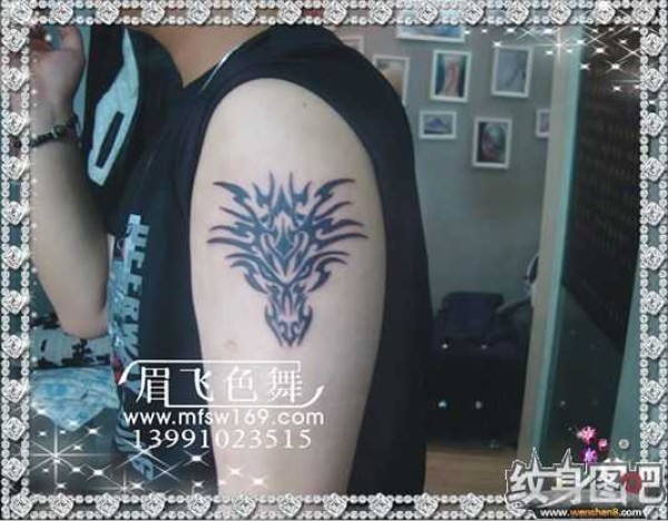 龙纹身手稿_一组老传统黑灰龙手稿纹身图案