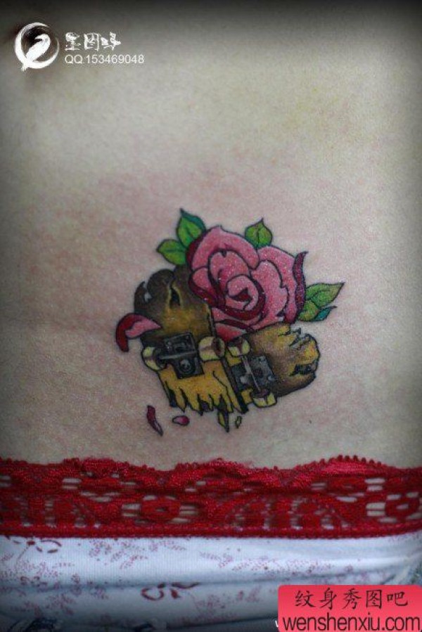 女生腹部好看时尚的爱心玫瑰纹身图案
