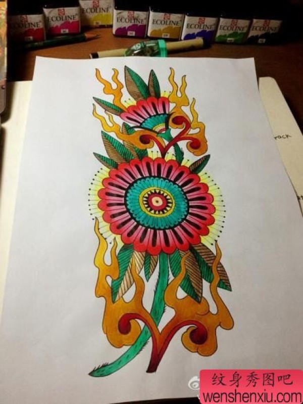 曼陀罗点刺梵花_100张曼陀罗点刺梵花纹身手稿图案