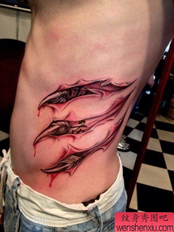 腰部另类超帅的撕皮爪子纹身图案