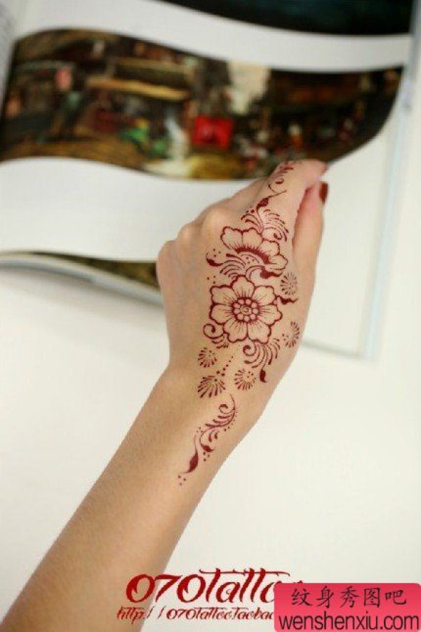 女生手背时尚时尚的图腾花卉纹身图案