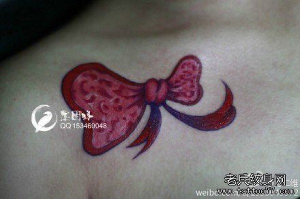 女生锁骨小巧时尚的蝴蝶结纹身图案