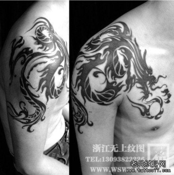 超帅霸气的图腾披肩龙纹身图案