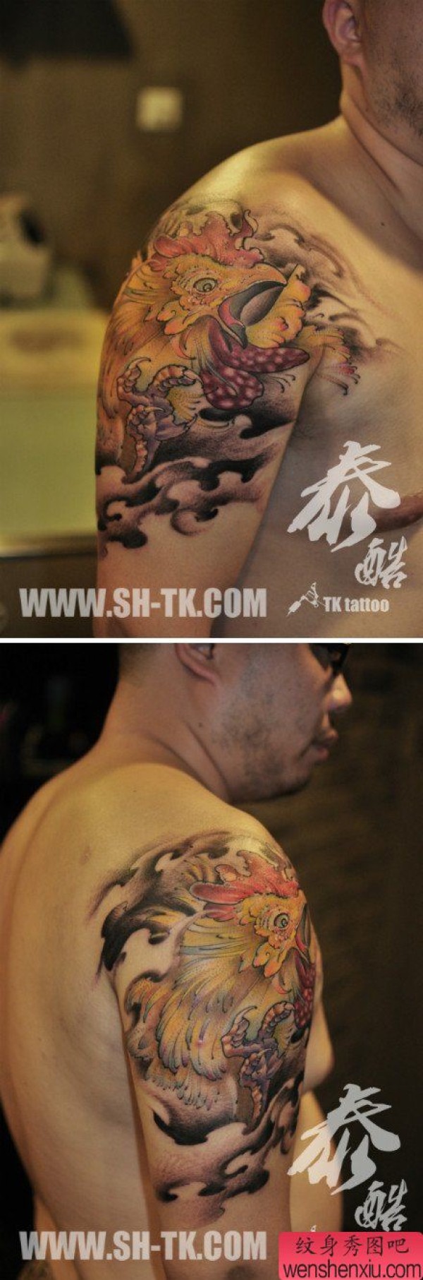 手臂经典很酷的一张公鸡纹身图案