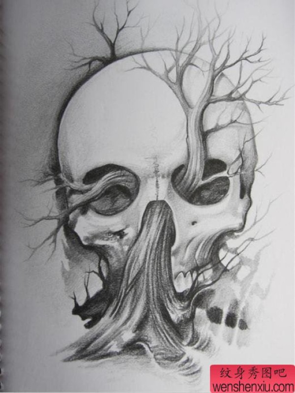 给喜欢骷髅的纹身爱好者分享一张骷髅树纹身图案