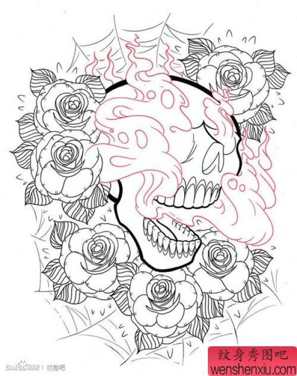 时尚精美的一张骷髅与玫瑰纹身手稿