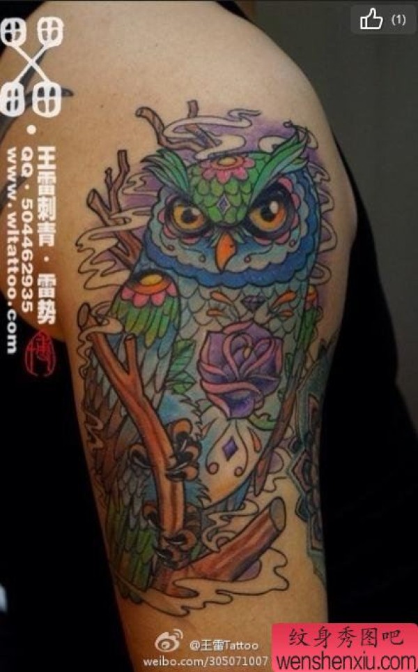 一张漂亮的猫头鹰纹身图案
