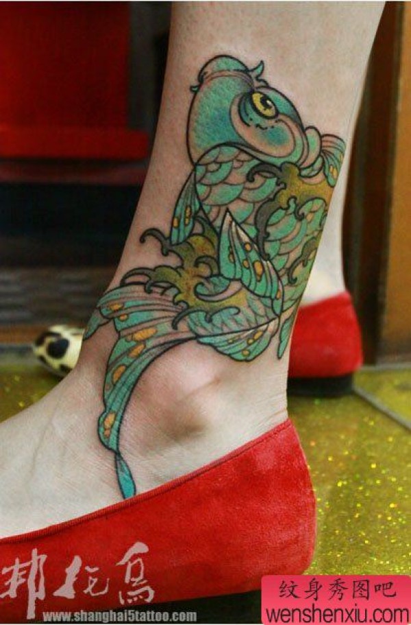 腿部时尚时尚的彩色小鲤鱼纹身图案