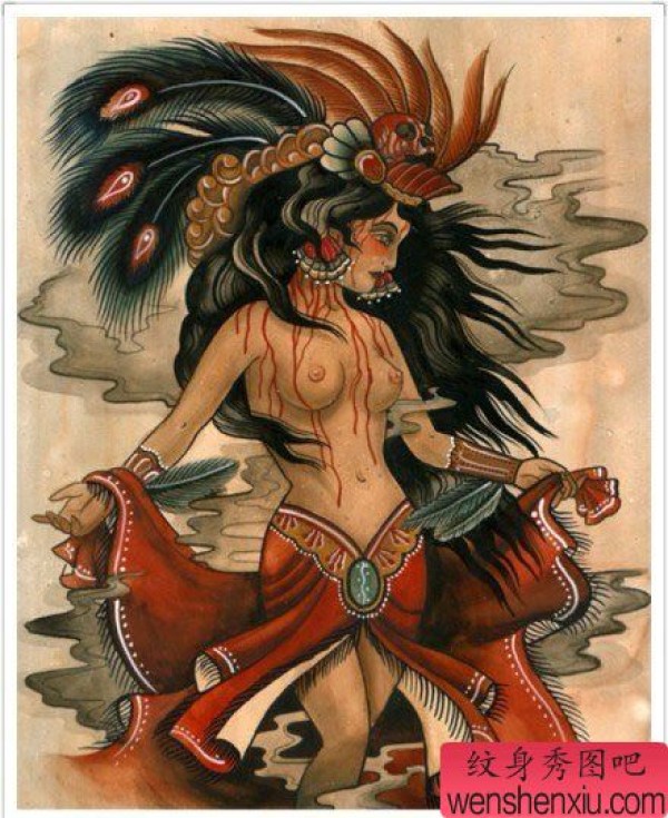 时尚漂亮的一张部落美女纹身图案